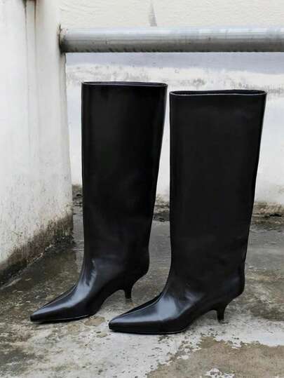 Fall/Winter French Blogger Style Pointed Toe Thigh High Boots, Ins Nordic Kitten Heel Equestrian Boots For Women,Kitten Heels - Black - View 1