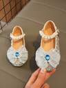 1 par moderiktiga mångsidiga rosa flickskor med pärlor och strass, söta platta sandaler, rund tå, lämpliga för vardagsbruk, dans, utomhus, paljettdekor, stängd tå, prinsessskor med sluten tå, små i storleken, vår och höst