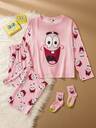 SpongeBob SquarePants | SHEIN Dampyjamasset med söt tecknad grafik, lös långärmad topp och byxor, vår/höst (strumpor ingår ej), vinterkläder