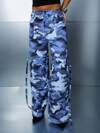 SUMWON WOMEN Wide Leg Military Style Cargo Combat Pants Festival Camouflage Utility Street Fashion Bottoms Side Pockets Long Loose High Waist