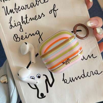 Fashionable Creative Transparent Green And Pink Striped + Circular Earphone Case Suitable For AirPods Pro 3, New Pro 2, Cute Apple 4 Minimalist 3, Personalized 1/2 Earphone Case For Women