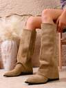 Damstövlar i enfärgat, glansiga, moderiktiga, mångsidiga, dragkedja i sidan, spetsig tå, tjock klack, ökad höjd, klassiska, mjuka, halkfria, lätta, avslappnade stövlar för utomhusbruk.