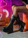 Höga stövlar med snörning och pälsfoder, gotiska vinterstövlar med tjock sula