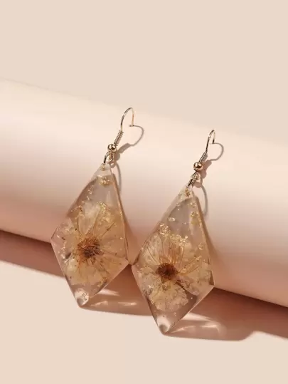 Geometriskt Hängande Örhängen Blomma Design - Genomskinlig - Visa 1