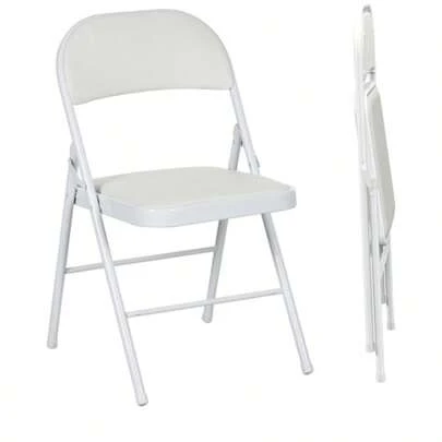 Folding Camping Chair With Padded Backrest, Folding Office Chair With Steel Frame, Padded Kitchen Chair, Maximum Load 120 Kg, For Guests, Office, Camping, White - White - View 1