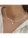 1 st Nytt trendigt Faux Pearl Pave Zirconia Initialt hänge Guldfärg Rostfritt stål Vatten Wave Chain Halsband för kvinnor