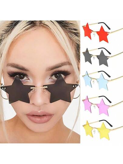 Frameless Pentagram Shaped Colorful Ocean Piece Fashion Fashion Glasses, Suitable For Christmas Parties, Gatherings, Stage Performances - Multicolor - View 1