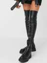 Damvinterstövlar, Hög platå och knähöga, Enfärgad, Slät yta, Enkel stil, Avlånga och smala ben, Höga klackar med grov klack, Imitationsmocka, Matchande kofta, Fest