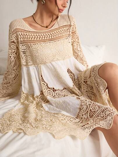 Freevana Women's Fashion Crew Neck Long Sleeve Short Knit Sweater Dress - Khaki - View 5