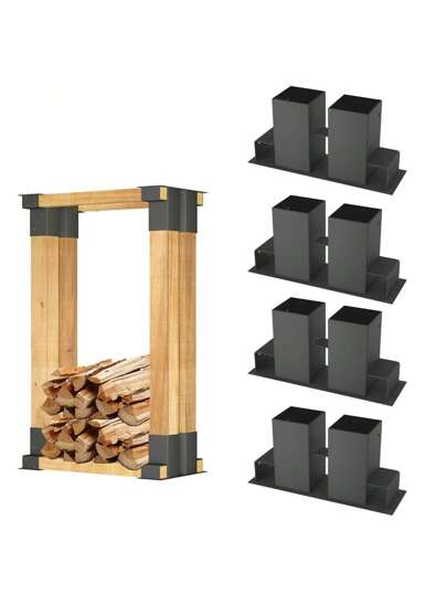 Froadp Wood Stacking Aid, Stable Firewood Holder, Set Of 4 Log Racks, Wood Shelf For Indoor And Outdoor Use, Black - Black - View 1