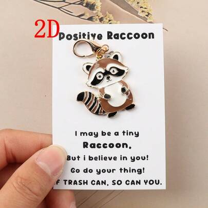 Funny Raccoon Keychain Gift, Positive Zinc Alloy Animal Trash Panda, Emotional Positive Support Gift For Men & Women, Friend, Coworker, Bestie, Motivational Encouragement Present, Best For Birthday
