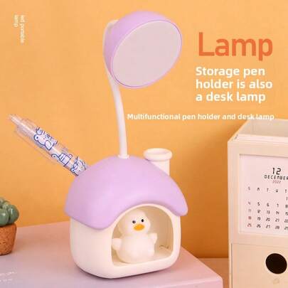GCTECHING 1 Pc Purple House Pen Holder Desk Lamp With Pencil Sharpener Multi Functional USB Rechargeable Desk Lamp For Indoor Living Room Bedroom Classroom Library Study Desk Lamp Gift Use - Purple Duck Table Lamp - View 1
