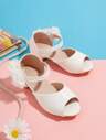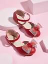1 par Små flickor Småbarn rosettdekor PU-läder Chunky Crystal Heel Bekväm Elegant mångsidig klänning sandaler, lämplig för våren sommaren hösten
