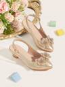 1 par småbarnsflickor med blommor och glitter chunky häl spetsad tå ihåliga eleganta mode mångsidiga festskor, lämpliga för vår, sommar, höst