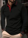 Men 1pc Casual Contrast Trim Quarter Button Long Sleeve Polo Shirt, Suitable For Spring & Autumn, For Golf, For Fall