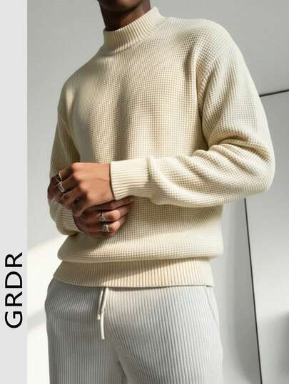 GRDR Men's Autumn/Winter Fashion 7-Gauge Jacquard Turtleneck Long Sleeve Sweater - Apricot - View 1