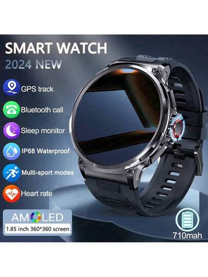 GUHUAVMI 2024 New Rugged & Durable 1.85" (4.7cm) HD Large Screen Bluetooth Calling Smartwatch For Men, With GPS Tracking, 710mAh Large Battery, 400+ Watch Faces, Heart Rate & Sleep Monitoring, Fitness Tracker For Android & IOS, Best Gift For Active Men - Black - View 1