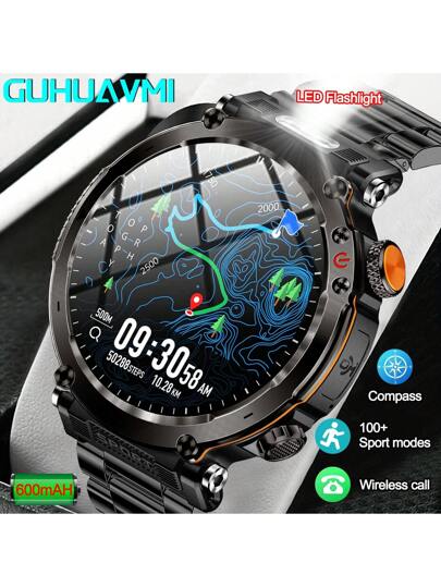 GUHUAVMI Outdoor Sports Smartwatch For Men (Answering/Making Calls), The Latest Android IOS Wireless Smartwatch From 2024, Sturdy And Durable Outdoor Fitness Tracker, Compass/AI Voice/Pedometer/Sleep/LED Flashlight, 600 MAh Battery, Suitable For Android/IOS - Black - View 1
