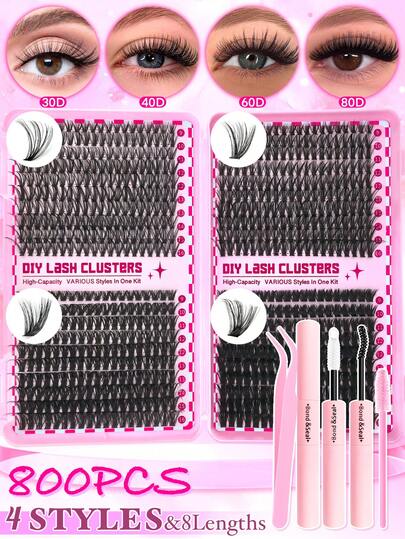 Get 800/280PCS D Curl Lashes In One Set - 30D, 40D, 60D, 80D Options! These Lashes Feature A Natural Design, Perfect For Matching Both Party Glam And Casual Daily Makeup. Their Soft And Comfortable Texture Guarantees All-Day Wear Without Discomfort, Ideal For Sensitive Eyes. Upgrade Your Look Effortlessly