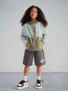 Sparklyn 1pc Girls Hooded Zip-Up Short Cardigan Jacket, Knitted Textured Fabric, Autumn