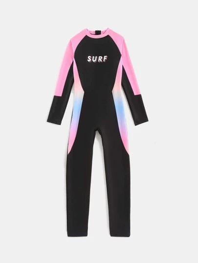 Girls Letter Graphic Ombre One Piece Swimsuit - Black - View 1