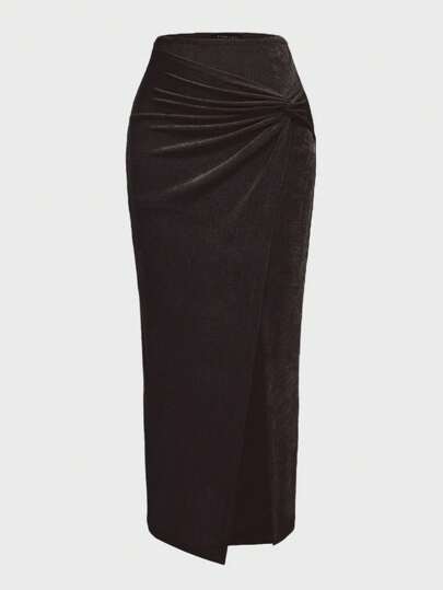 Review: Very beautiful skirt. Almost velvet material with good stretch. Lightweight and matches the picture and the description perfectly. True to size as well so no need to size up or down.