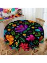 1/36 st 2D platt vintage mexikansk bordsduk - Färgglatt blommönster runt polyesterduk för inomhus-/utomhusbruk, vår- och sommarfestivaler, picknick, köks- och matdekor - Maskintillverkad hållbar heminredningsgåva, mexikansk heminredning, livfullt bordstillbehör, slät texturduk, festivaldekoration