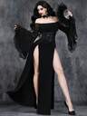 Dam Gotisk Sexig Romantisk Elegant Retro V-ringad Halloweenfest Häxärm Mesh Spets Sammet Hög Midja Jumpsuit
