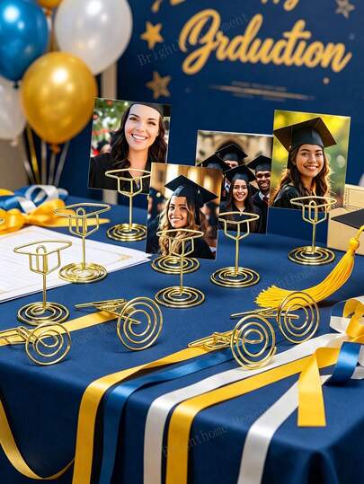 8pcs/4pcs-Graduation Cap Table Number Plate Holder, Graduation Cap Display Clip, Multifunctional Gold Graduation Cap Business Card Holder And Memo Clip, Suitable For Graduation Party, Wedding, Birthday Party - Multifunctional Photo/Image/Business Card Desktop Display Stand With Stable Base, Elegant Cap-Shaped Central Decor For Desktop(8pcs/4pcs/1pc)