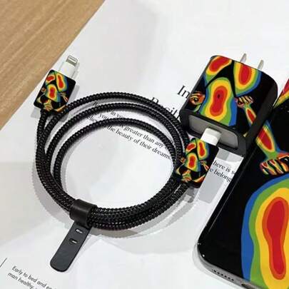 Kabelskyddsfodral i graffitistil, kompatibelt med 18-20W laddare, reptåligt och slitstarkt skyddsfodral - Svart - Visa 1