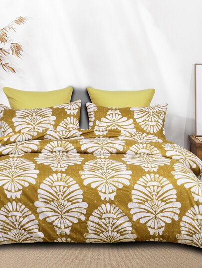 Graphic Print Duvet Cover Set Without Filler - Mustard Yellow - View 5