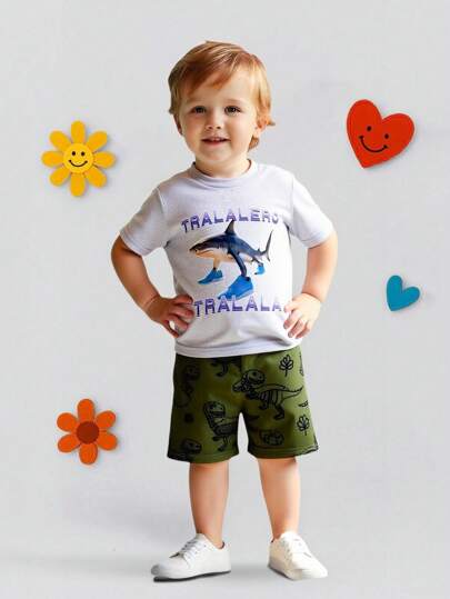 GraphicGems Young Boy Casual Shark Print Round Neck Short Sleeve Grey T-Shirt, Summer Young Boys 3 7yrs Beach Summer Holiday - Grey - View 1