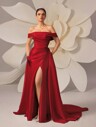 HEARBOBO Chic Satin Off Shoulder High Waist With Belt, A-Line Evening Women Wedding Dresses
