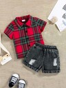 Nytt Höst/Vinter Babypojke Casual Rutig Långärmad T-shirt & Byxor 2-delars Set