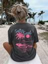 Dam vår och sommar ny palmträdsslogan tryck dagligt avslappnad rund hals kortärmad t-shirt trendig semesterstil, din dagliga nödvändighet. Grafiska t-shirts kvinnor vit topp svart topp rosa topp semesterkläder kvinnor