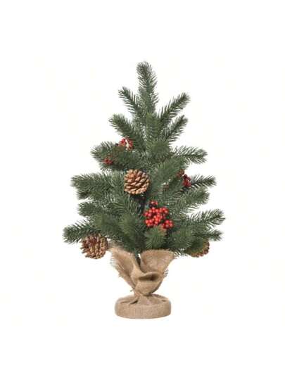 HOMCOM Artificial Christmas Tree 50 Cm With 55 Branches, 4 Red Berries And 4 Pine Cones, Stable PE And Cement Base, Ø28 X 50 Cm - Green - View 1