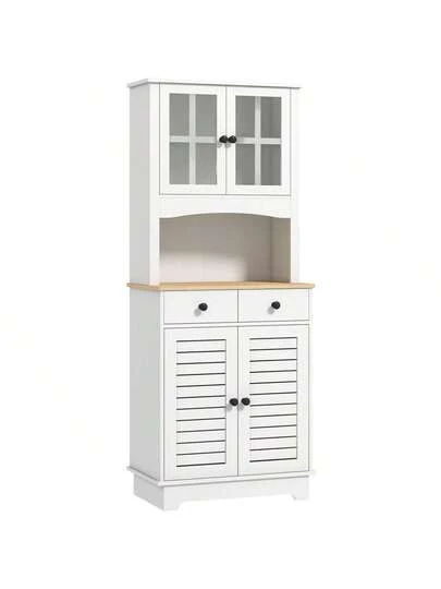 HOMCOM Köksskåp med glasdörrar, 2 lådor, diskskåp, matrumsskåp, trä, 68 x 39,5 x 170, vit - 1 - Visa 1