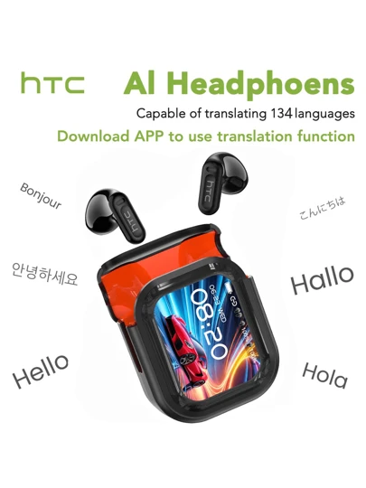 HTC NE20 AI-översättningsheadset: Över 131 språk översatta, trådlös 6.0, extra lång livslängd, pekskärmsfunktion, smart LCD-skärm, spelheadset för fitness, resor, arbete - Svart NE20 AI - Visa 5