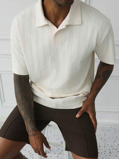 HUEFORM Men's Old Money Casual Solid Color Turndown Collar Short Sleeve Knit Polo Shirt, Suitable For Daily Travel And Home Use For Summer