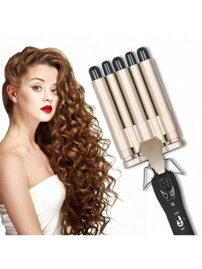 Hair Crimper Iron 5 Barrel Curling Iron Wand, 0.6 Inch Hair Waver Curler Ceramic Tourmaline Hair Styling Tool With Dual Voltage (0.6 Inch) - EU C Type Plug(220-240V) - View 1