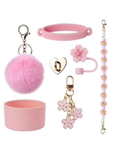 Handvirkad bukett, 1 bukett med konstgjorda blommor, Dekorativt set med konstgjorda blommor - rosa (tillbehör 7-delat set) - Visa 7