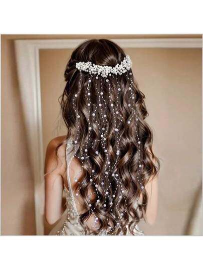 Handgjort elegant brudpärlhårband med tofs, bröllopshåraccessoarer hårkammar för kvinnor alla hjärtans dag-accessoarer - Vitt - Visa 1
