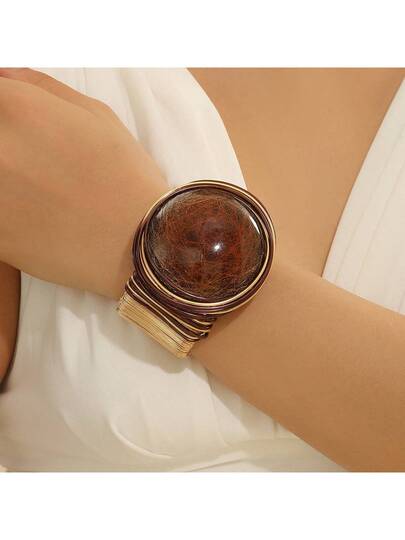Handmade Heavy Industry Bead Weaving, Winding, Aluminum Wire Stretching, Plastic Resin, Mibo, West Asia, Middle East, Banquet Vacation, Fashionable Retro Popular Bracelet - Coffee - View 1
