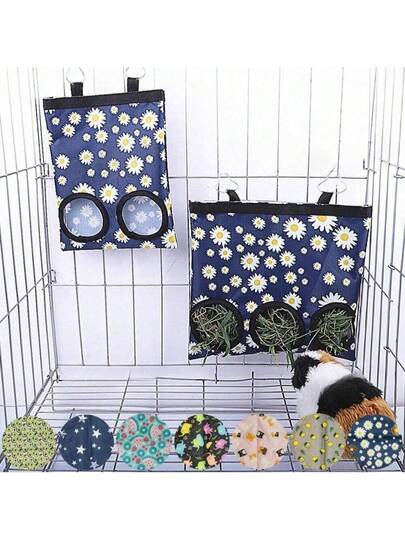 Hay Feeding Bag With Metal Quick Buckle, Suitable For Hamsters, Rabbits And Other Small Pets, Keeps Pet Cage Clean And Prevents Hay Waste, Multiple Floral Patterns And Colors Available, Suitable For All Seasons - Multicolor - View 1