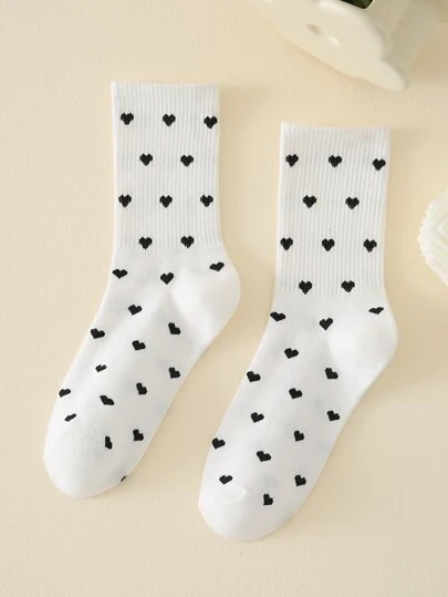 Hjärtmönster Crew-strumpor, Höststrumpor - Svart och Vitt - Visa 1