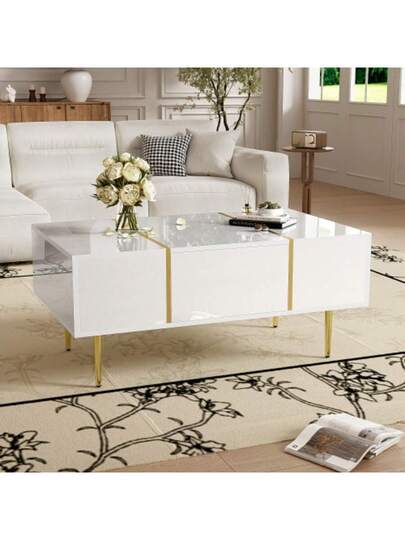 High-Gloss White Coffee Table, Modern And Simple, With 2 Drawers. - White - View 1
