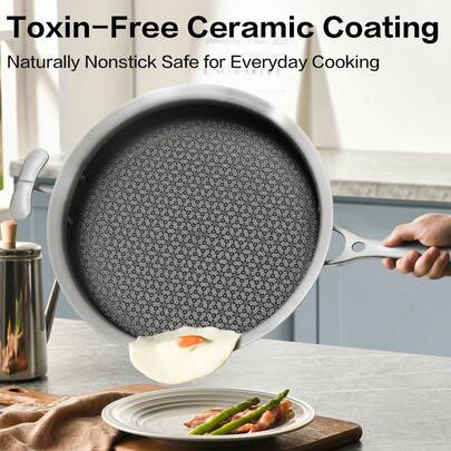 High-Quality Stainless Steel Non-Coated Frying Pan - Oven And Dishwasher , Great For Cooking Juicy Roast Chicken And Family Meals