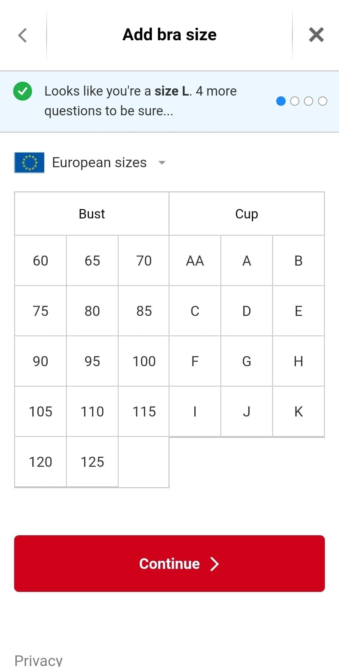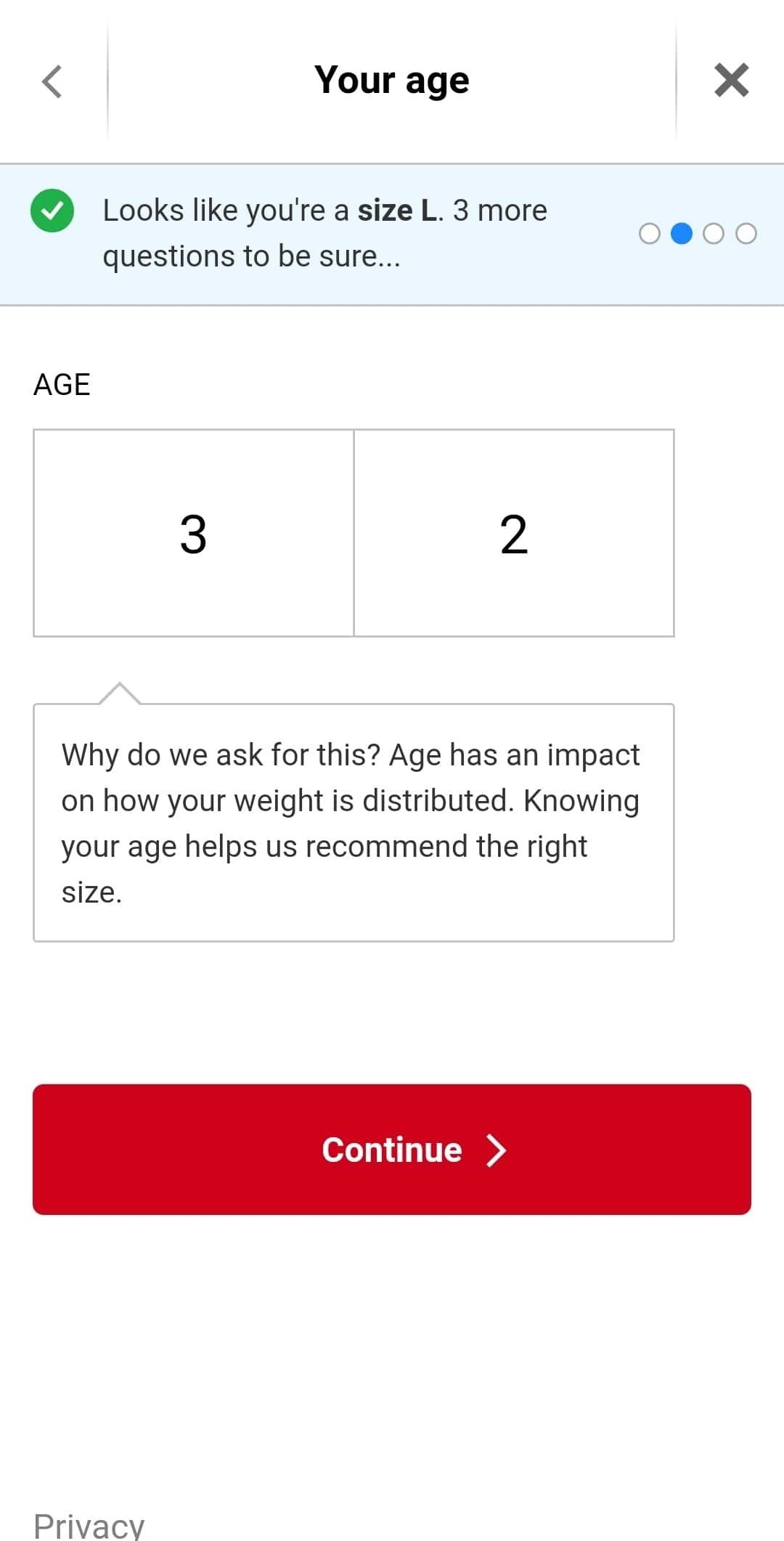 Vår Fit Finder kommer att be om information som din längd, ålder och vikt för att hjälpa dig att välja rätt storlek när du beställer.
