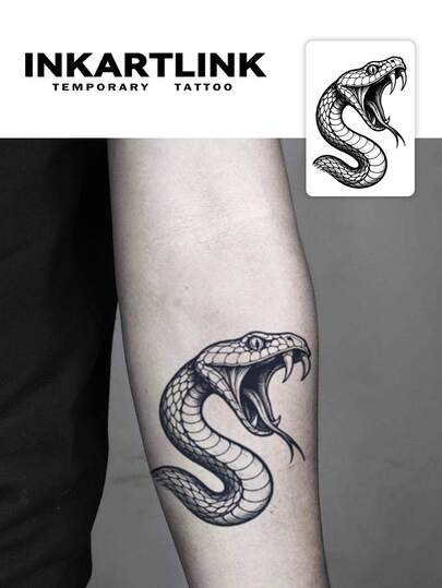 INKARTLINK 1pc Cool Animal Series Decorative Temporary Tattoo, Fierce Snake, Cigar Cat, Heart Scorpion, Waterproof Body Art Tattoo Sticker, Long-Lasting 1-2 Weeks, For Men And Women - Black - View 1