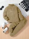 SHEIN 2 st/set Ung pojke Casual Enfärgad Hoodiejacka Med Fickor & Termofodrade Dragsko Byxor, Varm Vinteroutfit Höst